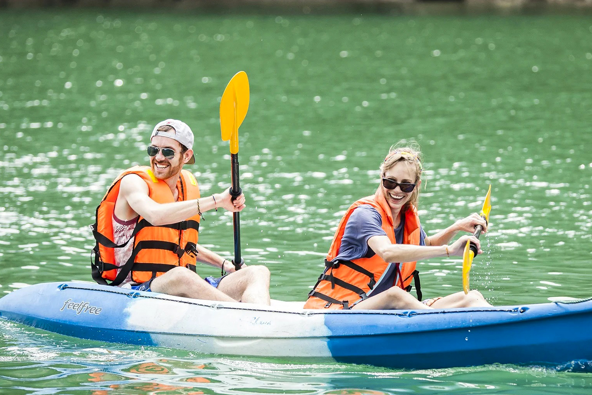 Sẽ là trải nghiệm đáng nhớ khi tung tăng mái chèo bồng bềnh trên sông nước và cảm nhận những giọt nước trong xanh bắn mạnh lên mặt mát lạnh, lênh đênh theo những con sóng dập dìu, cảm giác như vừa chinh phục được một thử thách khó khăn.