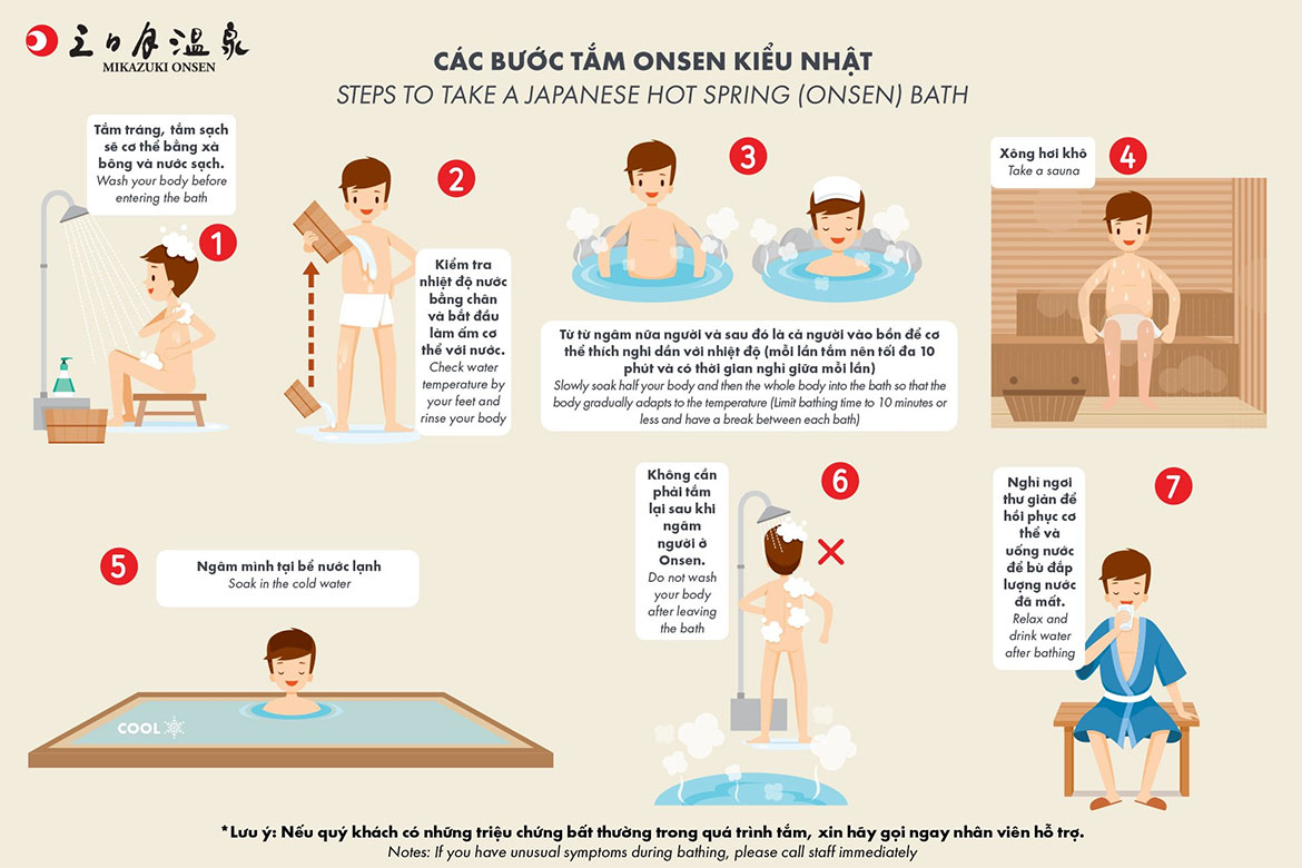 Các bước tắm Onsen